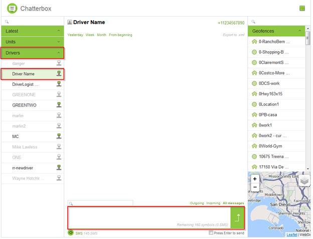 In the new window that opens, click on the Drivers tab on the left, select your driver and type your message in the textbox at the bottom of the screen. This will send and receive messages in real-time from the driver: