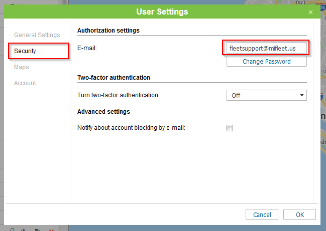 Users tab > Item properties (wrench) next to user > Advanced tab > enter email here.