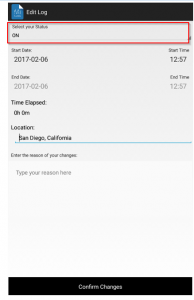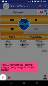 With version 111, a new toggle function was added to the main screen to let the driver select if they want to use location services or not. By default this option is toggled off driver can enable it during regular working hours so Driving time isadded properly without having to create new Driving records later on. Oncethe driver is done for the cycle and wants to bring the device (phone/tablet)with him during OFF duty time, they can switch location services off to avoidautomatic switch to Driving.