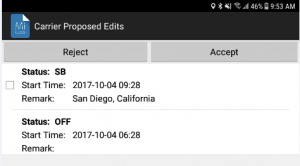 - You edit the logs in the management portal, then the driver must log out and log back in to see those Carrier-Requested log edits (screenshot below):