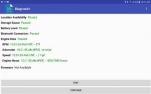 Find your device in the list with the matching 10 digit ESN serial number and select. Once connected, click “Test”, the tablet will run through its diagnostics to read parameters from the engine.