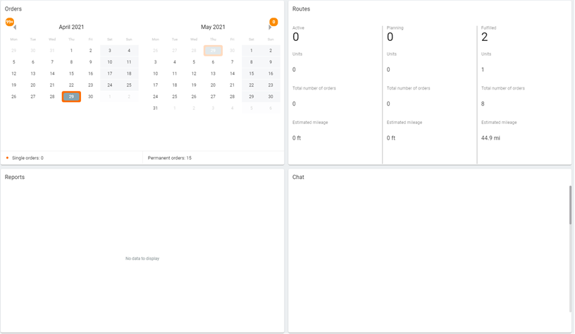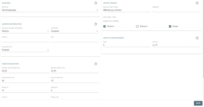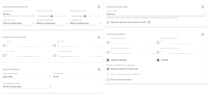 - Here you can find parameters used upon orders creation, distribution, and the routes involved.